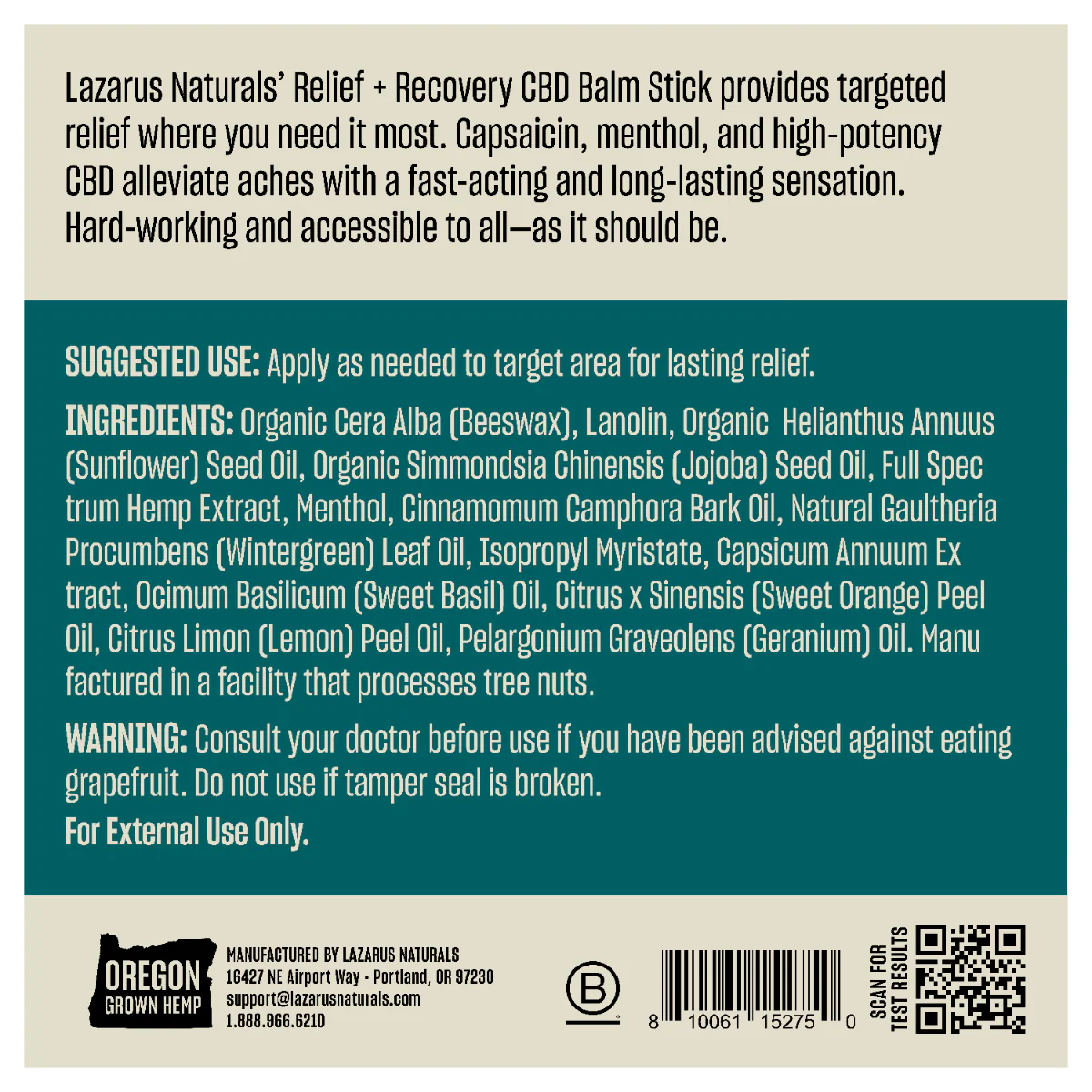 Lazarus Naturals Relief & Recovery Balm Stick is a convenient, mess-free topical designed for targeted application wherever skin and muscles need extra care. The solid stick format glides on smoothly, making it easy to apply before or after physical activity, travel, or daily routines.